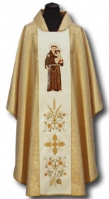 Ornat haftowany z wizerunkiem Św. Antoniego. Długość 125cm. Materiał złoty.