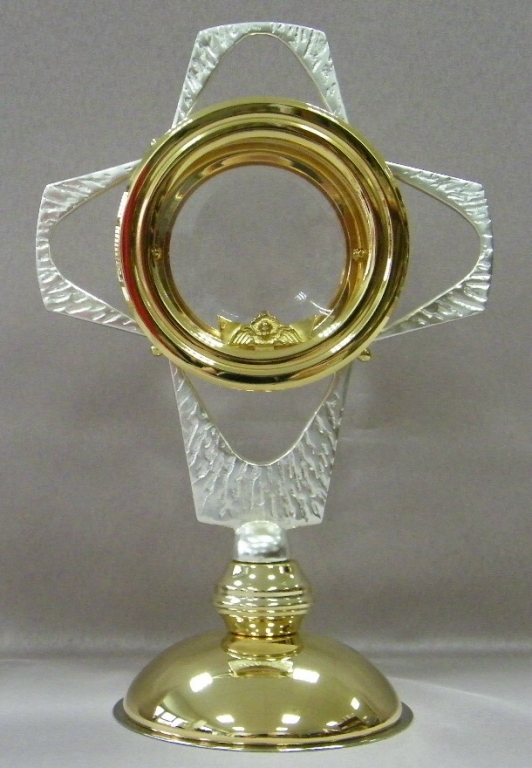 Monstrancja złocona i srebrzona. Wymiar 27X18cm