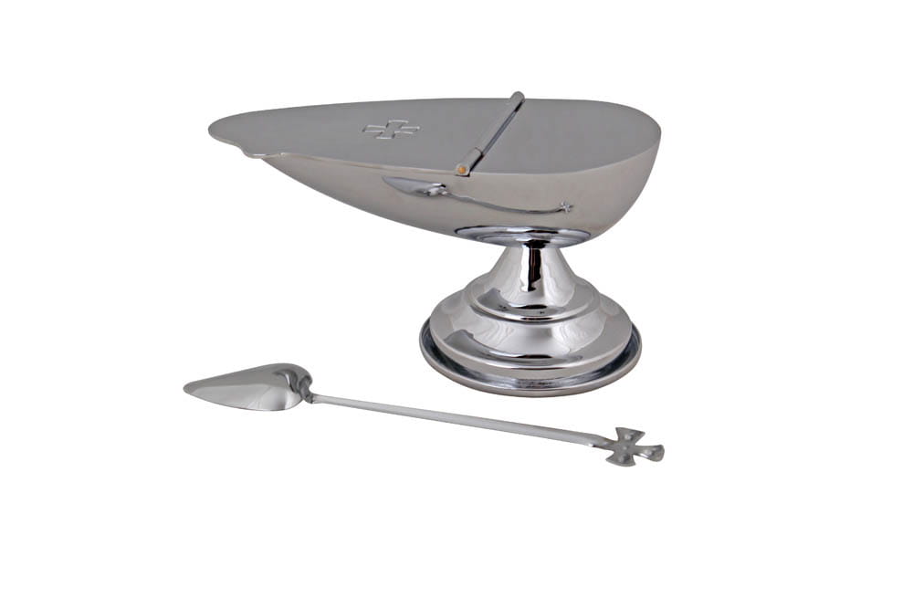 Łudka mosiężna niklowana wysolość 7 cm , długość 13 cm